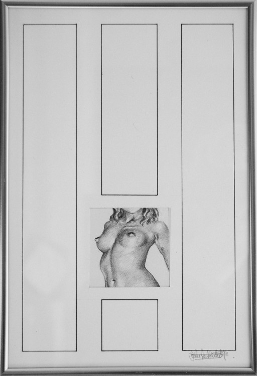 Dessin crayon sur papier petit format environ 6.5 x 6.5 cms. Passe-partout 20 x 30 cms avec rehauts encre de Chine. Sous encadrement 20 x 30 cms.. Vente uniquement en atelier ou lors d'exposition.